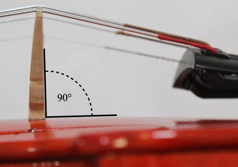 - El lado del puente más cercano al cordal debe estar perpendicular a la cara del instrumento.